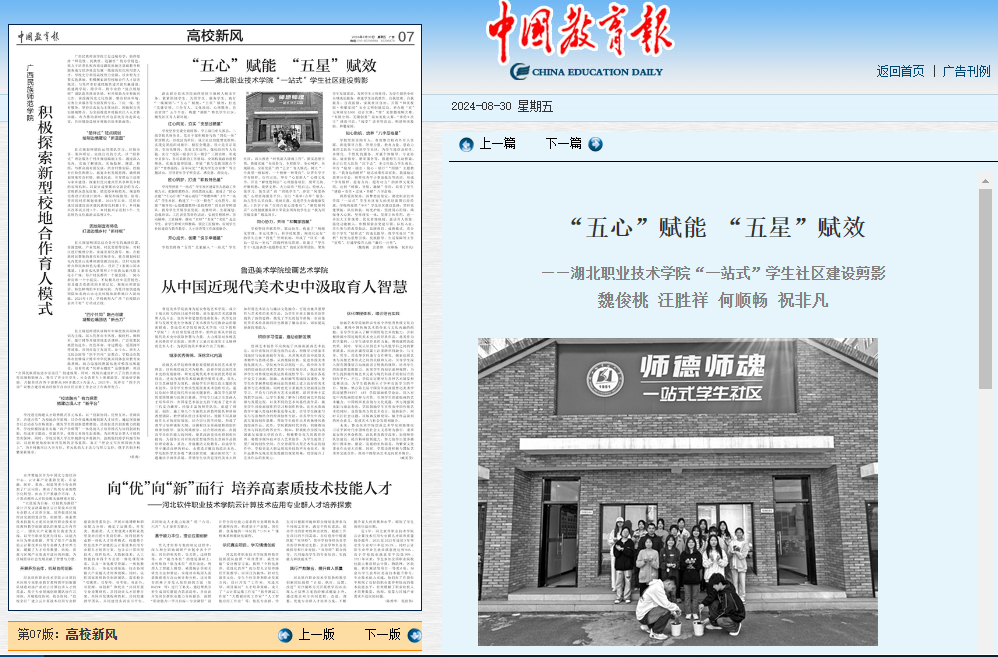 乐动网页版始终坚持立德树人根本任务,紧紧围绕学生、关照学生、服务学生,践行“一线规则”,“五心”赋能,“五星”赋效,打造“党建引领、三全育人、文化浸润、心理服务、自治管理”五个平台,构建“湖职”特色学生社区,激发社区育人新动能。