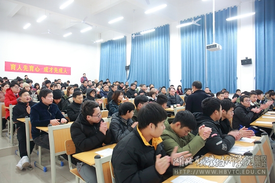 2019年1月10日晚,建筑技术学院联合湖北省宏阳新型建材股份有限公司(简称宏阳公司)举办的“国学进课堂”系列活动总结会在南校区知行楼424阶梯教室举行。学校党委书记张国雄、副校长杨立明出席了本次活动,学校党委宣传部、学工部、团委、思想政治理论课部、公共课部相关同志,以及各二级教学院学工副书记和全校专兼职辅导员代表等参加了本次活动。