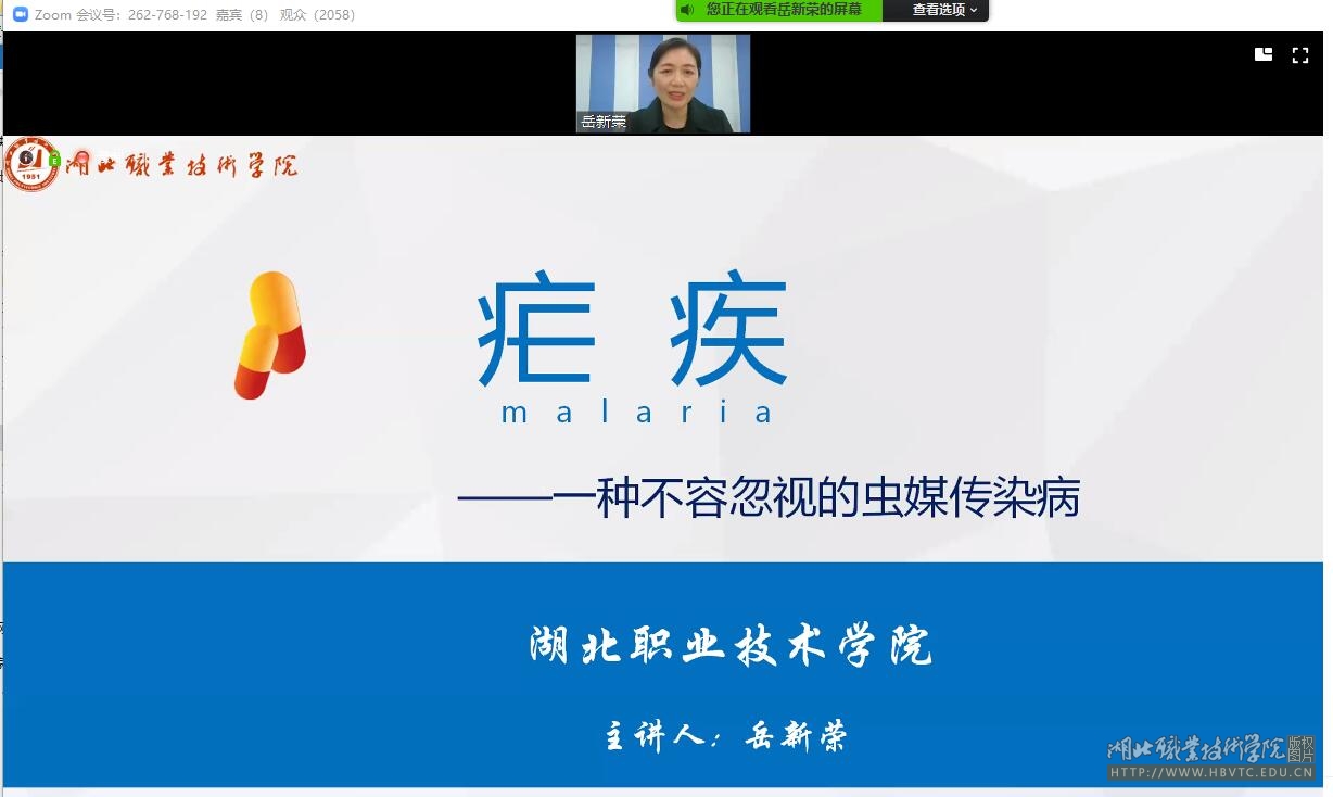 岳教授以小时候亲身经历的“打摆子”引入课程,阐述了疟疾的前世今生和流行病学,重点讲解了疟疾的诊断及防治知识。讲授内容深入浅出,在线教学技术运用娴熟,注重与学生互动和测试,自然融入课程思政元素,积极拓展持续学习空间,深受师生好评。本次直播课充分展现了岳新荣教授的名师教学风范,也体现了学校教学团队扎实的专业功底。