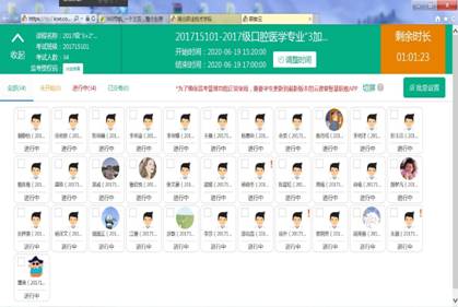本次转段考核采用职教云平台进行线上考试,学生同时使用两部手机,一部手机登陆腾讯会议,打开摄像头,对准参考人员,另一部手机登陆云课堂智慧职教APP参加考试,监考人员通过腾讯会议和职教云监考管理实时监控学生考试情况。同时,为进一步加强德育教育,培养学生诚信意识,达到知识和品行的双重考核,本次考试单独命题一套诚信试卷,考生先手抄完成诚信考试承诺书,并签名拍照上传,再进行专业综合考试答题。整个转段考试过程有条不紊,秩序井然,67名参考学生沉着应考,认真答题,充分展现了我校学子良好的学风考风。荆楚理工学院教务处、医学院相关领导全程参与线上巡视,并对我校转段考核的严密组织给予充分的肯定和高度评价,下一步,双方将就项目一体化培养的具体衔接工作继续深入探讨。