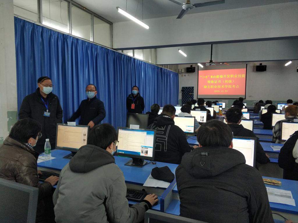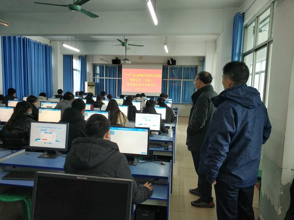 乐动网页版考点安排了初级和中级两个考场。信息技术学院组织了100人规模、为期一个月的考前培训,经过严格筛选,选取了37名同学报名参加初级考试,28名同学报名参加中级考试。整个考试组织严密、秩序井然。同学们反映培训针对性强、效果好,对“1+X”Web前端开发职业技能等级证书的取得充满信心。