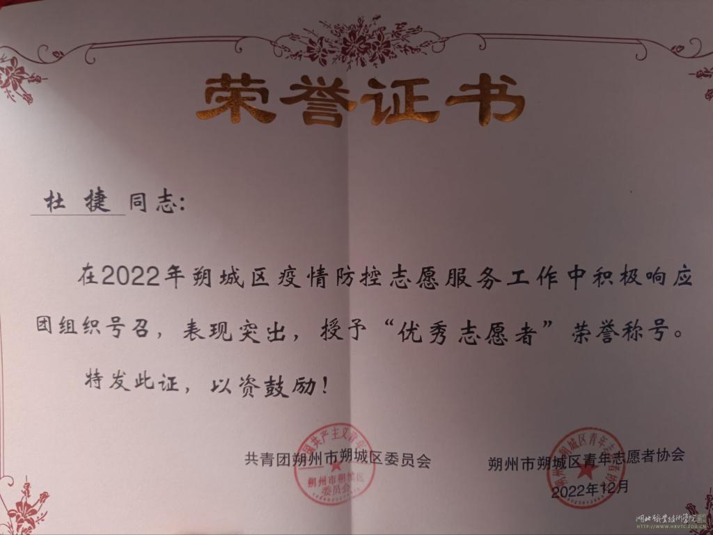 “信息星火志愿服务队”的队员们清洁了人们的居住环境,在最困难时候减轻了社区的工作压力,在新春之际为老人们送去温暖的关爱。他们的无私奉献得到了各地、各组织的高度认可,给予了队员们相应的表彰,既是肯定,更是勉励。从自身做起,从小事做起,让湖北职院文明之花处处绽放,让志愿精神成为时代新风尚。