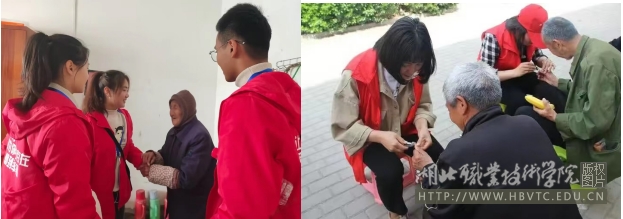 莫道桑榆晚,为霞尚满天。孝老爱老助老是中华优秀传统美德。谢婧娴、王桐、陈丹阳、熊欣欣主动前往各自附近养老院,给留守老人们送去鲜花,陪她们聊天,为养老院的老人带去温暖和陪伴。王桐、熊欣欣则相约帮助社区留守老人打扫卫生,整理家务、按摩、剪指甲,希望通过这些小事让他们感到温暖。他们说:社区的老人很多,希望通过志愿服务活动,能够使老年群体增强社会参与感,获得更多的社会关注和关爱。