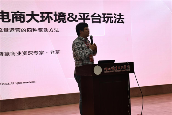 在当天的培训会上,从业达10年的智篆商业认证讲师“老草”,现场结合数据案例,深入浅出讲解电商大环境&各平台玩法、超级爆款运营模型、核心流量渠道持续获客等电商知识,让在场学员对电商行业发展、数据化营销、企业私域建设等内容有了更为深入的了解,进一步拓展大家的眼界、提升数字思维、增长电商知识。“老草”老师还从电商大环境出发,与学员展开探讨交流,并根据经验为企业提供发展方向,提供电商各大平台玩法,干货满满的讲解,赢得现场掌声不断。