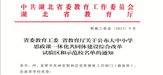 4月19日,根据《省委教育工委省教育厅关于公布大中小学思政课一体化共同体建设综合改革试验区和示范校名单的通知》精神,孝感市教育局等13个地方为大中小学思政课一体化共同体建设综合改革实验区;乐动网页版入选孝感市大中小学思政课一体化共同体建设综合改革试验区成员单位。