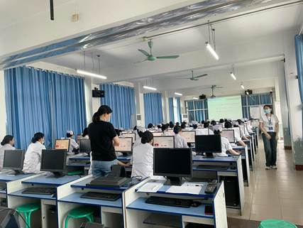 护理学院高度重视“1+X”证书项目建设工作,在动员学生报名、筛选、组织培训、考务工作等环节均做了周密细致的安排。培训评价组织安排督导员、武汉外语外事职业学院教务处夏泽天老师在考试现场全程督导。考评员严格按照评分标准进行考评,考务员及志愿者同学密切配合,报考学生认真准备、全力应考,最终全部顺利通过理论考试与实操考核。