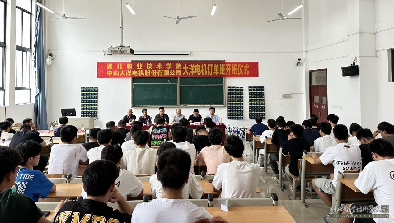 (本网讯 胡明亮)9月14日,乐动网页版与中山大洋电机股份有限公司“订单班”开班仪式在南校区知行楼举行。中山大洋电机股份有限公司BHM事业部副总经理徐小明、集团人力资源部部长谢利平、事业部设备中心总监杨家春,学校党委委员、副校长白梦清,对外合作交流处、机电工程学院相关负责人、大洋“订单班”2021级60名学生参加了开班仪式。