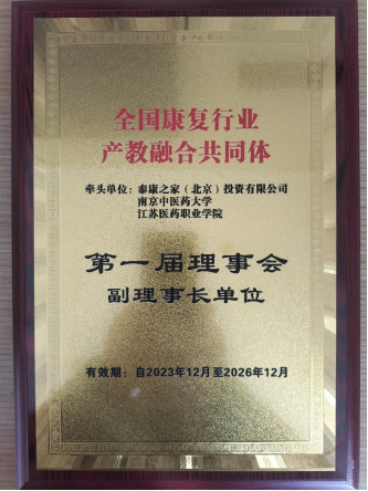 全国康复行业产教融合共同体是在中国职业技术教育学会医药卫生教育专业委员会、全国卫生健康职业教育教学指导委员会和中国国际科技促进会医药卫生教学与研究工作委员会指导下,由泰康之家(北京)投资有限公司、南京中医药大学、江苏医药职业学院牵头成立。