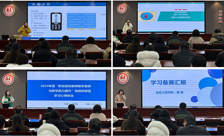 国赛备赛团队财经与旅游学院和教育与艺术学院两个备赛团队,对接省赛要求依次展示“说教学设计”、“8分钟教学实施”、“说教学实施报告”等。口腔医学院和信息工程学院两个备赛团队代表分享外出学习体会和国赛备赛心得。会议随机倾听了4位教师的现场学习感受。