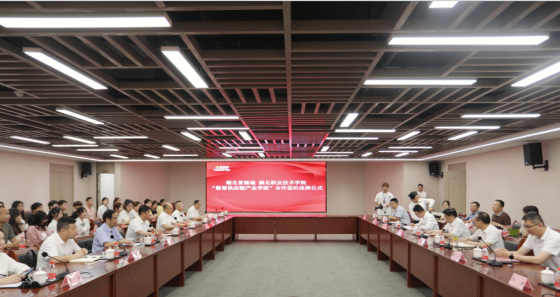 财经与旅游学院院长徐斌华介绍了校企合作产业学院建设背景和建设情况。他表示,加强与首衡城农商旅产业链对接,组建数智供应链专业群,建设“厂中校”,构建数智供应链产业学院,把教育链建在产业链、创新链上,双向赋能做好产教融合关键一招,纵深推进市域产教联合体建设,全力助推孝感新质生产力的培养、发展、壮大。
