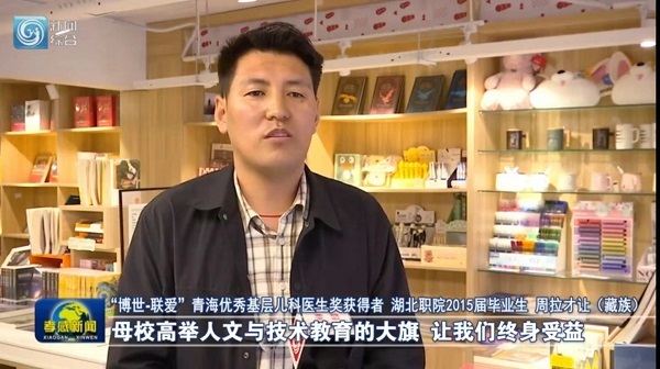 2024年4月19日,周拉才让接受孝感电视台采访时说,母校高举人文与技术教育的大旗,让我们终身受益,引导我扎根青藏高原,用仁心和医术回报社会。