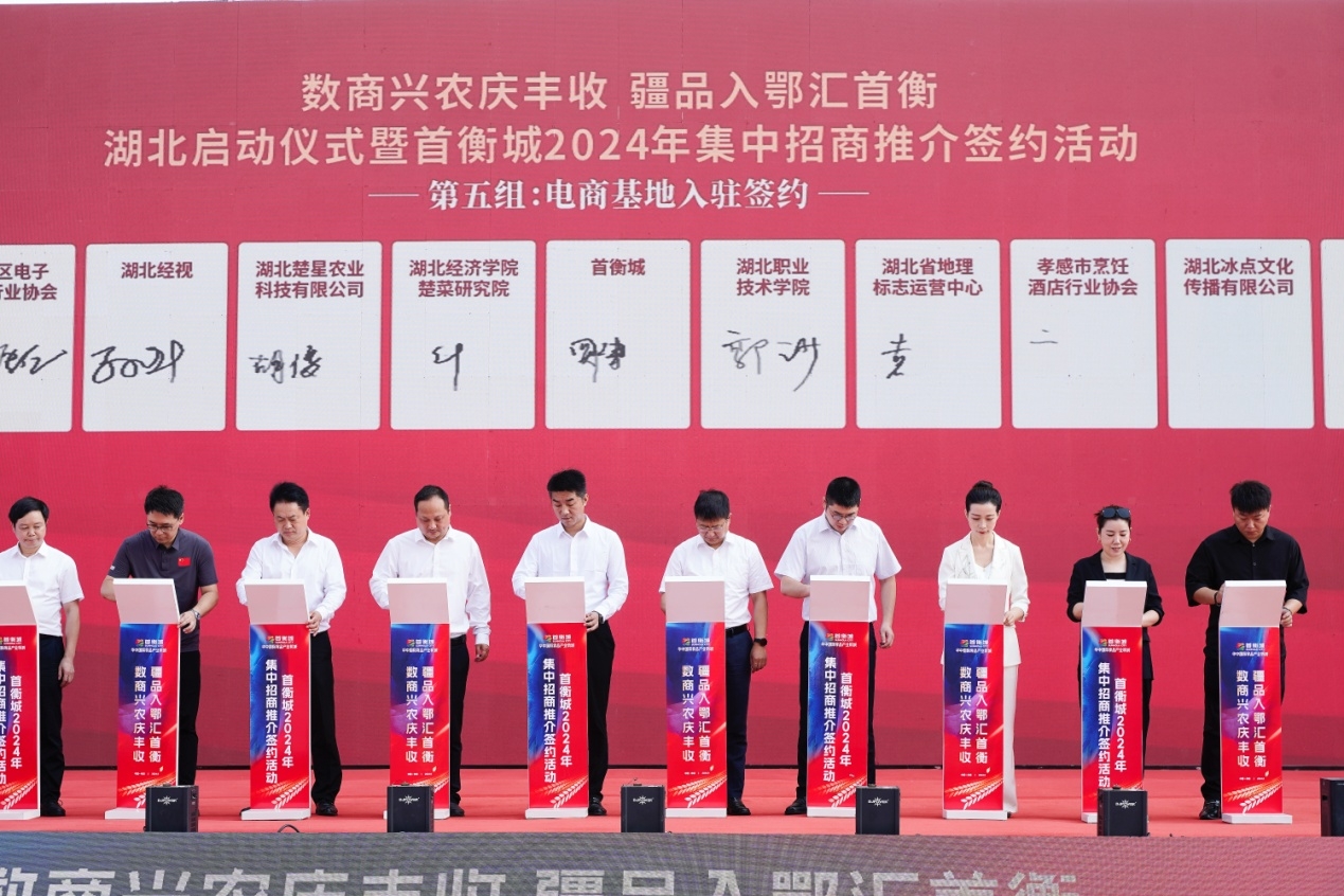 (本网讯 陈卫红 汪行光)9月28日上午,由湖北省商务厅、孝感市人民政府主办,首衡集团联合孝感市商务局、孝南区人民政府承办,“数商兴农庆丰收 疆品入鄂汇首衡"湖北启动仪式暨首衡城2024年集中招商推介签约活动在孝感首衡城举行,校长郭沙应邀出席活动。来自湖北省、新疆维吾尔自治区、新疆生产建设兵团等地领导,湖北省各市州商务局主要负责人及云南省商务厅、四川省攀枝花仁和区农业农村局,“疆品入鄂”产销对接活动企业代表、湖北省知名电商企业及网红达人等约2000人参加。财经与旅游学院近200名师生代表参加活动。