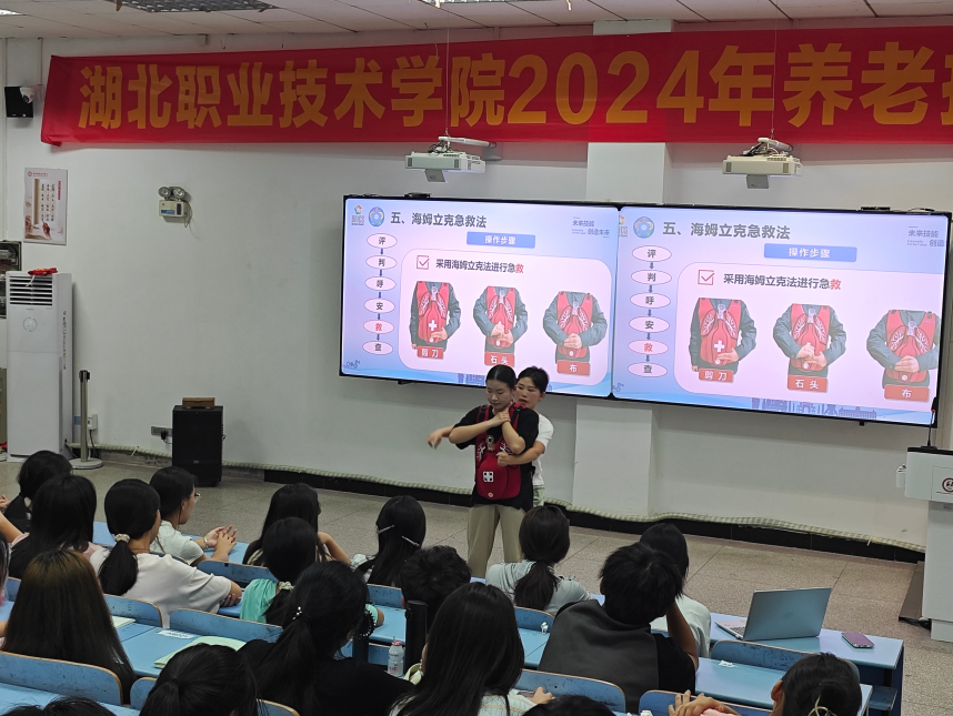 宣教内容主要包括技能操作和救护理论。技能操作环节通过演示海姆立克急救法处理急性呼吸道异物堵塞,明晰的步骤解说和生动的现场模拟演示,使在场同学对规范流程有了直观深刻的认知。救护理论部分针对中暑现场救护、溺水现场救护、触电现场救护、烫伤现场救护、犬咬伤救护等展开知识宣讲。