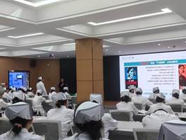 定薇以“提灯引路助成长 实践互学共进步”为题,从医院临床教学管理、临床实践实施、特色教学活动和行为礼仪规范四个方面详细介绍了武汉大学中南医院在实习生管理、评教评学、基础技能培训、专科护理培训、学生特长展示、学生职业规划等方面的具体举措,还现场就护理行为礼仪规范与学生进行了积极互动,学生踊跃参与,现场气氛热烈。