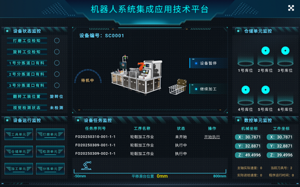 数字孪生工作站利用数字化孪生软件PQ Factory和边缘数据采集实验箱,搭建与实物平台1:1数字模型,进行智能产线设计、模型定义、信号交互与虚拟调试,并开展全流程的验证,实现虚控虚、实控虚、虚控实等虚实交互。