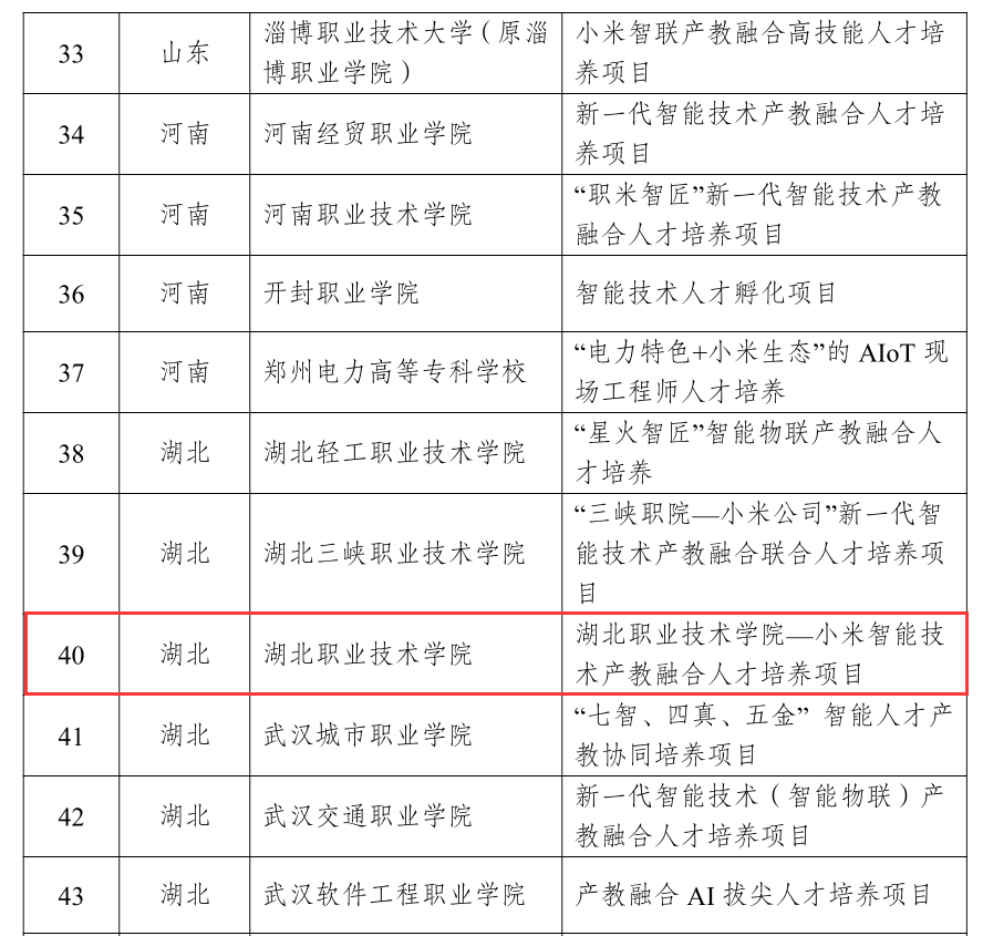 (本网讯 唐娟)近日,教育部职业教育发展中心公布了2025年度新一代智能技术产教融合促进项目入选名单,由对外合作交流处指导、信息工程学院申报的“乐动网页版-小米智能技术产教融合人才培养项目”成功入选。