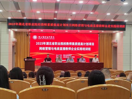 (本网讯 文/马江浩 王峰 李蓓蕾 图/ 陈灏) 7月21日上午,由湖北省教育厅主办,乐动网页版承办的2025年湖北省职业院校教师素质提高计划项目(网络营销与电商直播)教师企业实践培训班开班仪式在西区文博馆学术报告厅举行。孝感市教育局副局长邹德平、我校副校长杨立明、专家代表湖北工程学院二级教授、湖北名师江胜清、湖北冰点文化传播有限公司总经理熊传兵、我校继续教育学院院长丁浙英、财经与旅游学院党总支书记徐斌华等出席开班仪式,来自全省中高职院校60名教师齐聚一堂,共同开启为期28天的知识与技能的提升之旅。我校财经与旅游学院院长曹艳芬主持开班仪式。