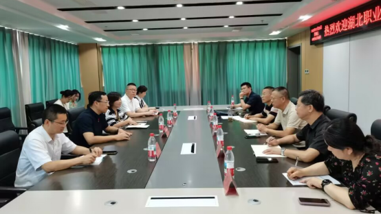 在武汉市第九医院,调研团队实地考察了康复医学科、儿童康复科,并与医院领导及相关科室负责人座谈。医院党委书记周敏芳、院长陈伟、医院党委成员刘跃斌分别介绍了医院及康复医学科的发展历程、主营业务与特色优势。杨立明介绍了学校的办学理念、专业设置和人才培养模式。双方围绕职业本科教育的必要性、重要性及下一步如何深化校企合作进行了深入交流;在共同培养人才、促进学生就业、实施兼职教师互聘等方面达成合作意向。杨立明一行还看望了在该院实习的湖北职院学生及在此就业的优秀校友代表,关切询问了他们的工作和生活情况。