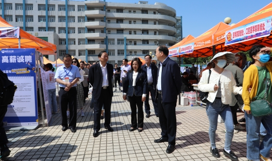 (本网讯 艾欢 陈灏)5月9日,学校举办了2023年“才聚荆楚·立业澴川”医护类招聘会。孝感市人力资源和社会保障局局长谢东安、孝感市卫生健康委员会主任蔡凤珍、学校党委书记郭国文等到招聘会现场指导工作。